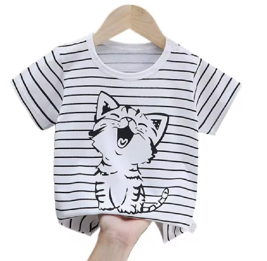 Soft cotton short sleeve tees with cute prints for your little one. Easy to dress with button closure on the shoulder. Perfect for playtime or outings!